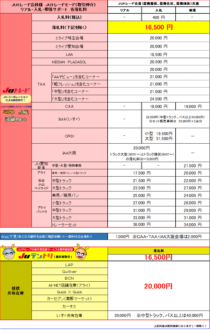 JU入札ネットとJUリアルネットが統合し、新サイト“JUナビ”が2011年7月3日に誕生!! 多くの会場でリアル応札が可能!! JU入札ネット・JUリアルネットをご利用いただいていた会員様は、JUナビへ自動移行しております! |